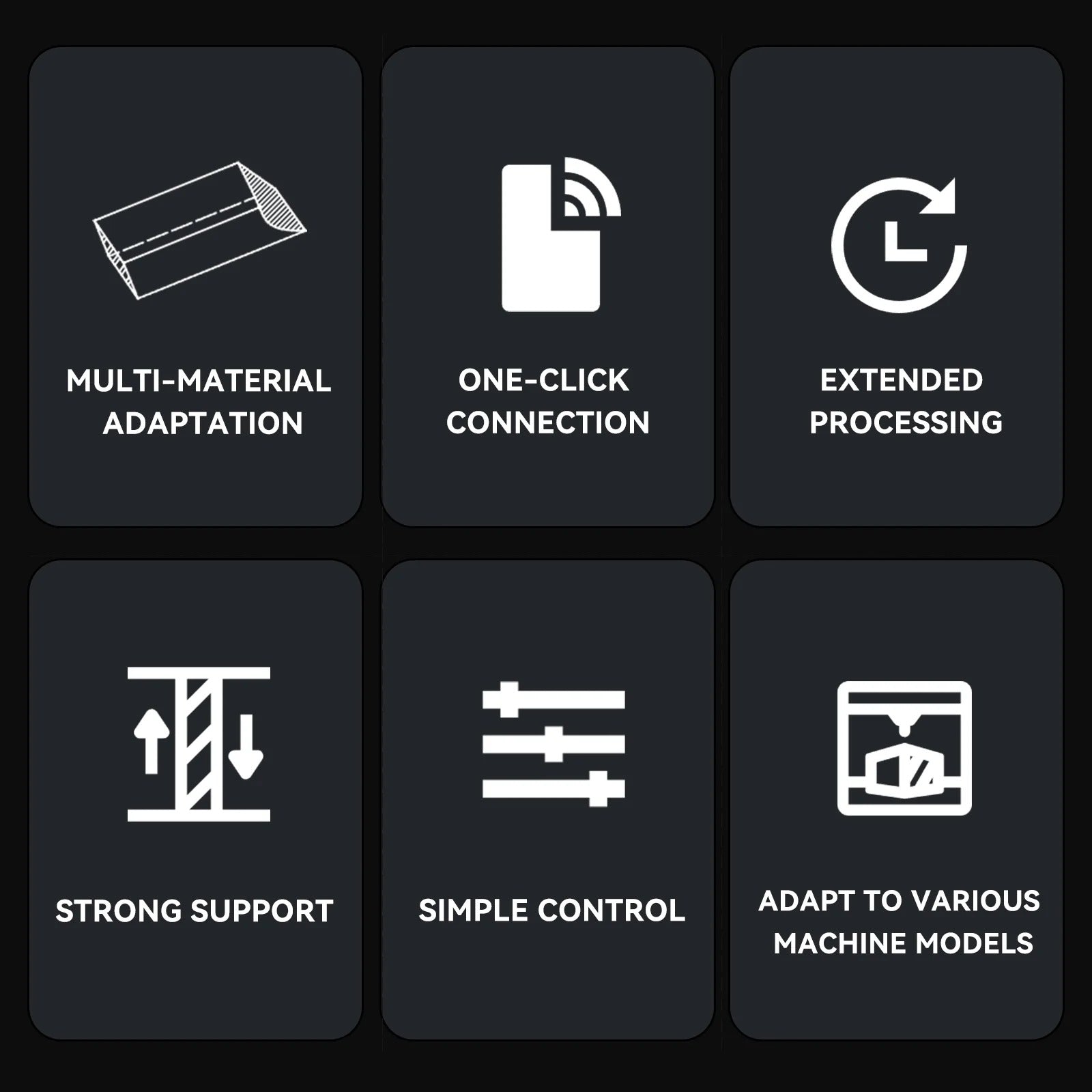 - Smart Recognition: Equipped with a recognition chip for seamless integration with Atomstack Studio, eliminating manual setup. Fully compatible with LightBurn.