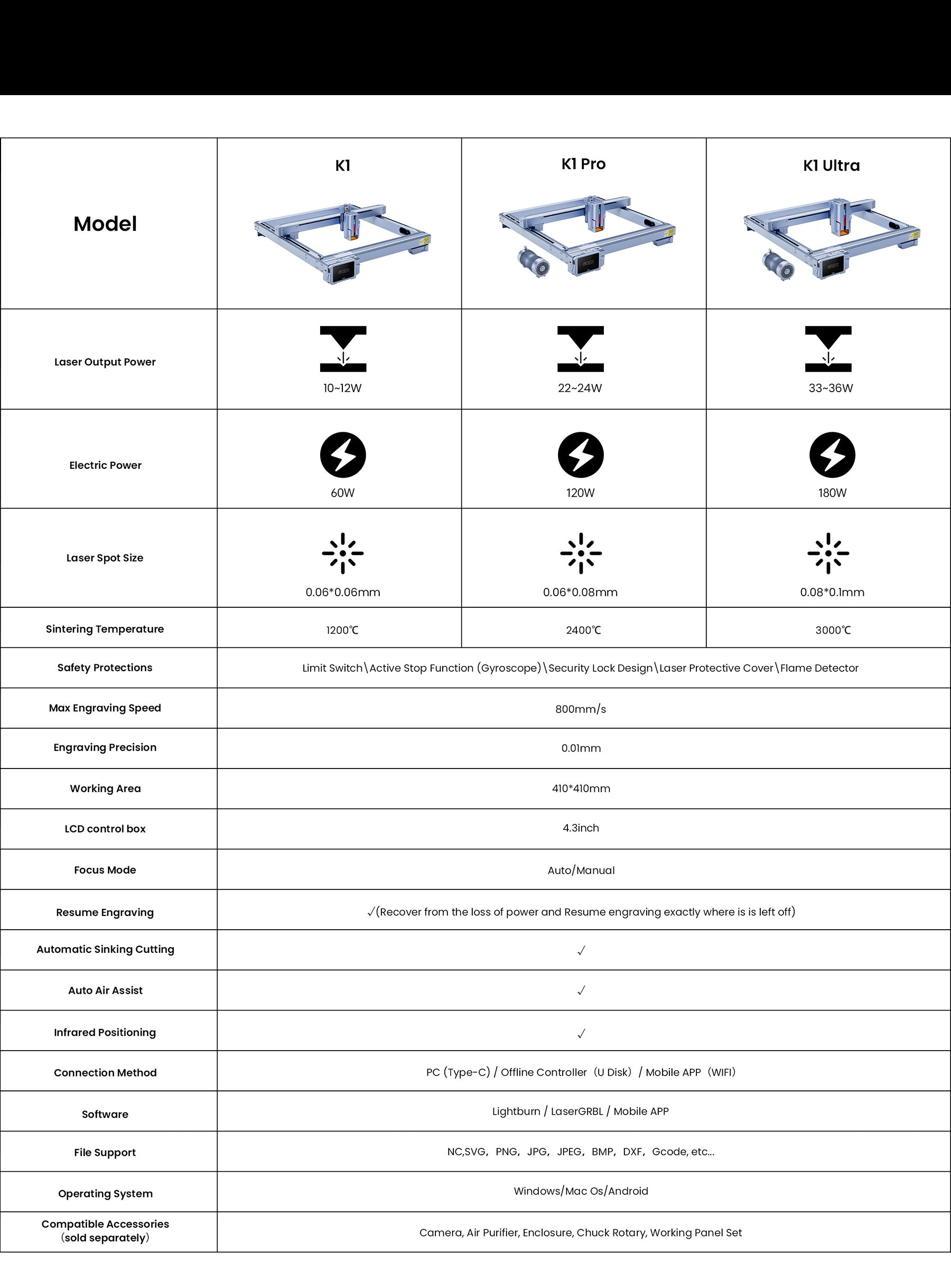 - Engraving Speed 800mm/s