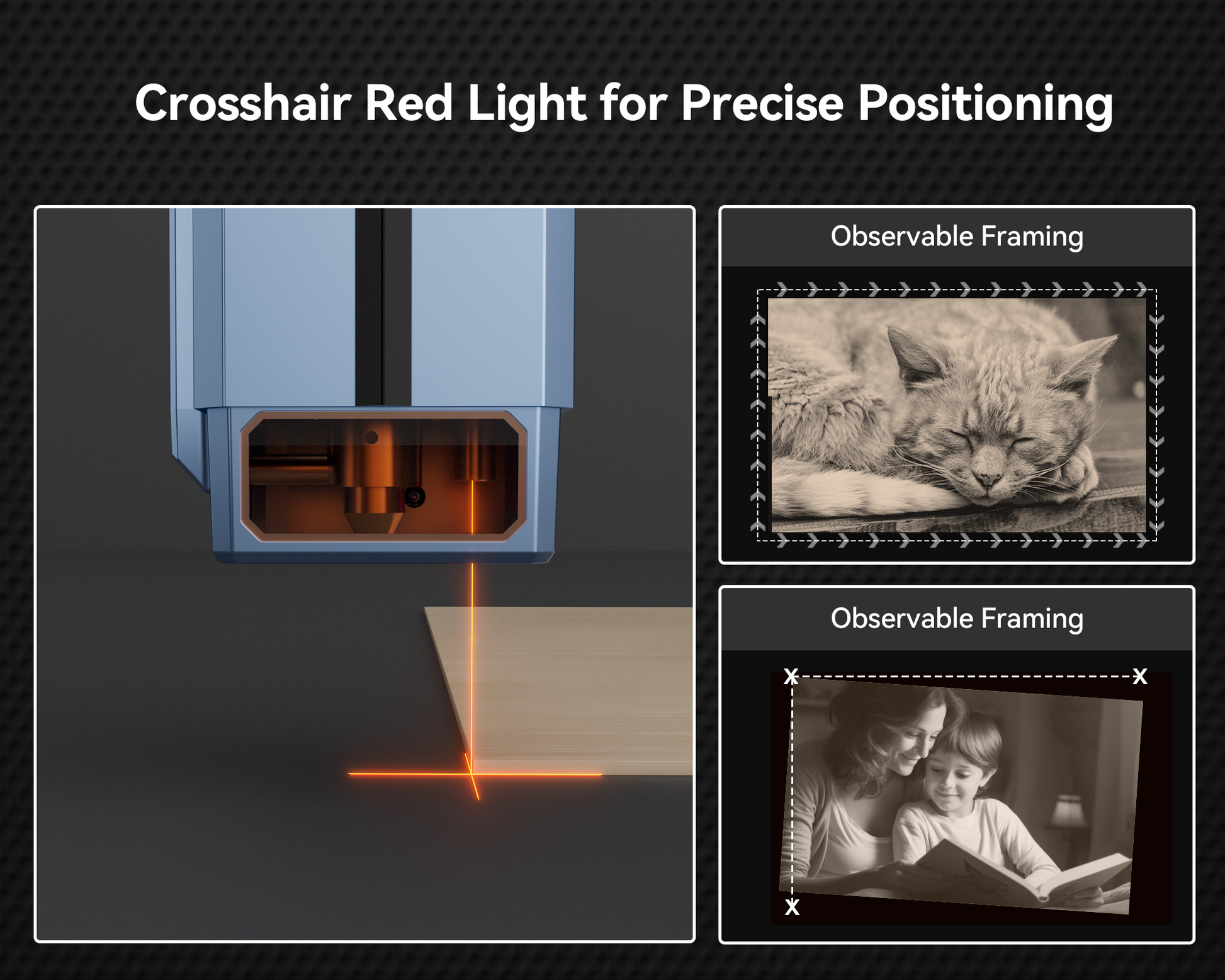3. Full Electric Z-axis & Red Cross Laser: One-click auto-focus instantly locks focal point, eliminating manual adjustment