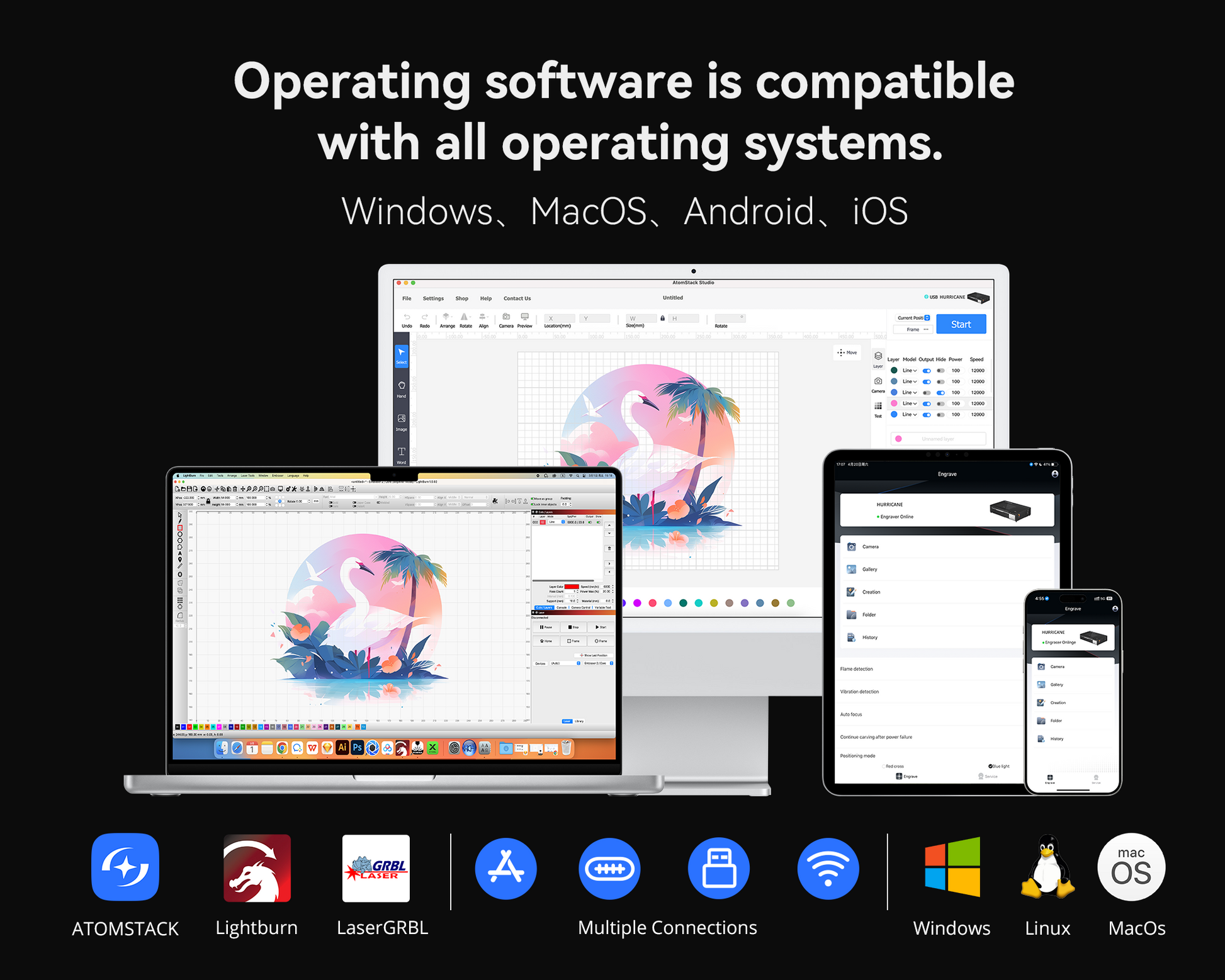 7. Cross-Platform Support: Windows/macOS/Android/iOS compatible with USB/Wi-Fi/TF card connectivity